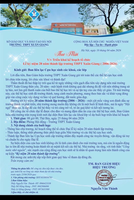 Hai thập kỷ – một khoảng thời gian đủ để một hạt mầm vươn mình thành cổ thụ, đủ để một đứa trẻ trưởng thành và cũng đủ để ngôi trường THPT Xuân Giang của chúng ta khẳng định vị thế một "điểm sáng" rạng rỡ nơi cửa ngõ phía Bắc Thủ đô.